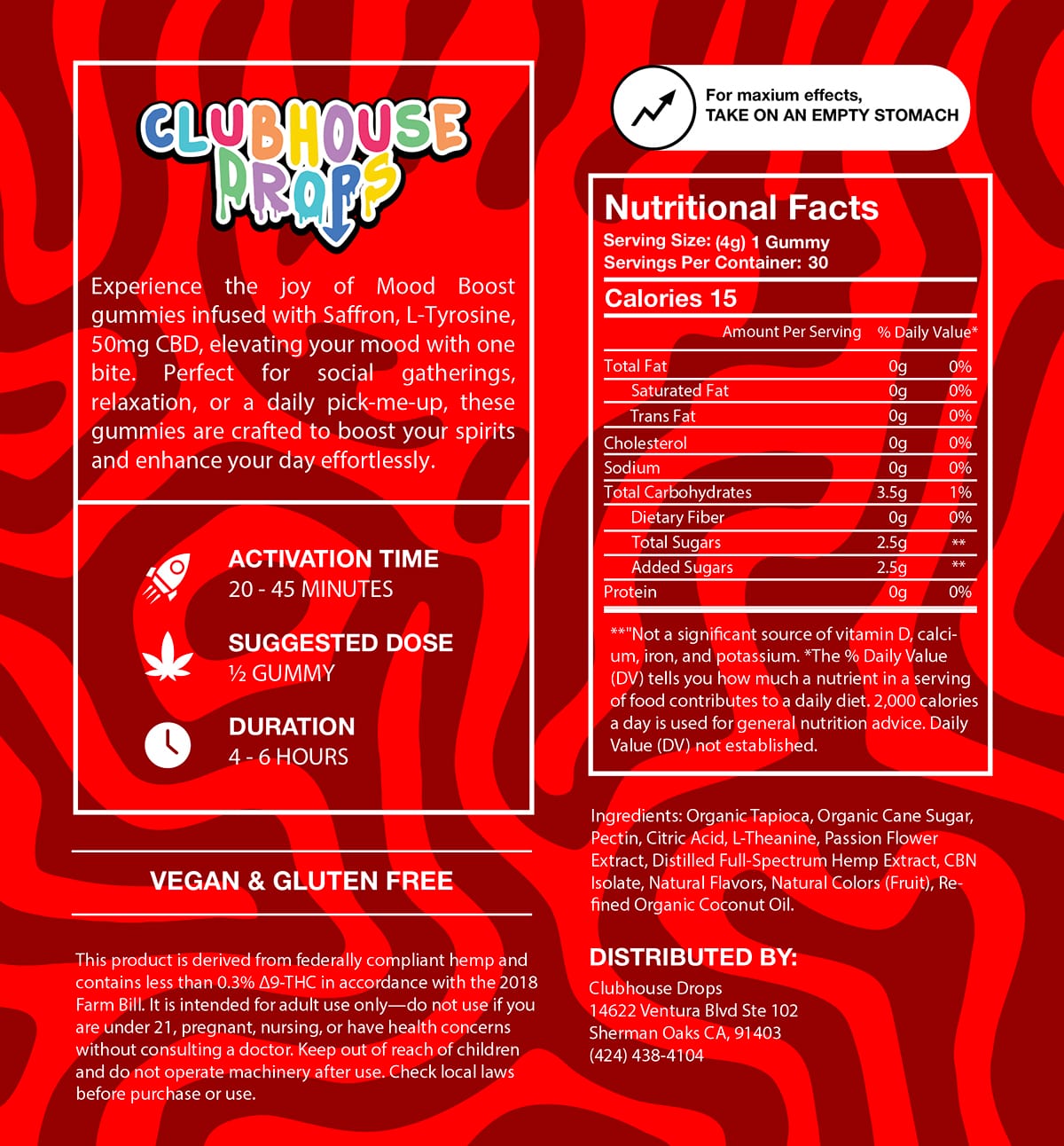 Experience the joy of Mood Boost gummies infused with Saffron, L-Tyrosine, 50mg CBD, elevating your mood with one bite. Perfect for social gatherings, relaxation, or a daily pick-me-up, these gummies are crafted to boost your spirits and enhance your day effortlessly.